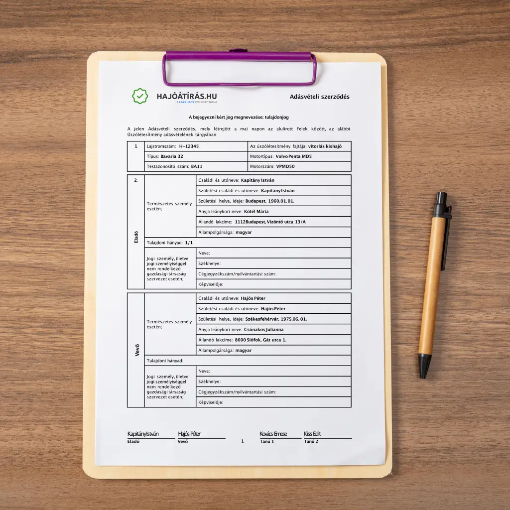 Hajó adásvételi szerződés (nyomtatás után, tollal kitölthető) mennyiség